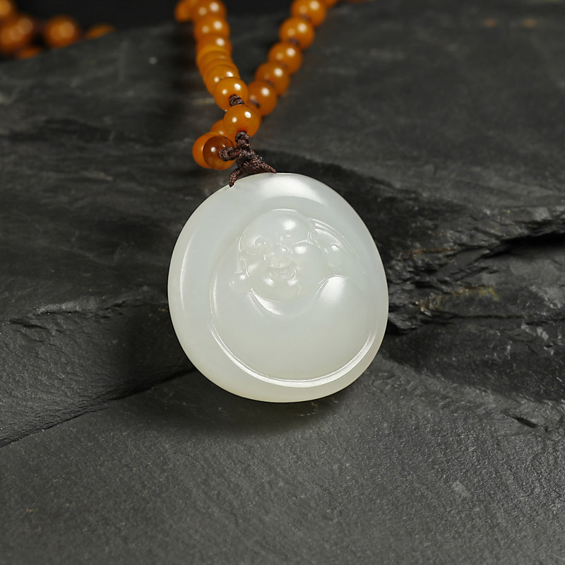 白玉子料挂件-弥勒佛